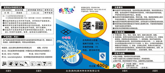 北農(海利)涿州種衣劑有限公司是由中國農業(yè)大學與湖南海利化工股份有限公司于1998年4月合資成立的有限責任公司。公司主要從事懸浮種衣劑、干粉種衣劑、懸浮劑、可濕性粉劑、水乳劑等農藥的研發(fā)、生產(chǎn)和銷售。